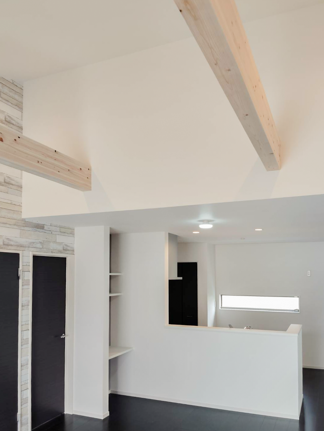 勾配天井に化粧梁をあしらったおしゃれな空間✨高さのある空間でゆったりと過ごせます。