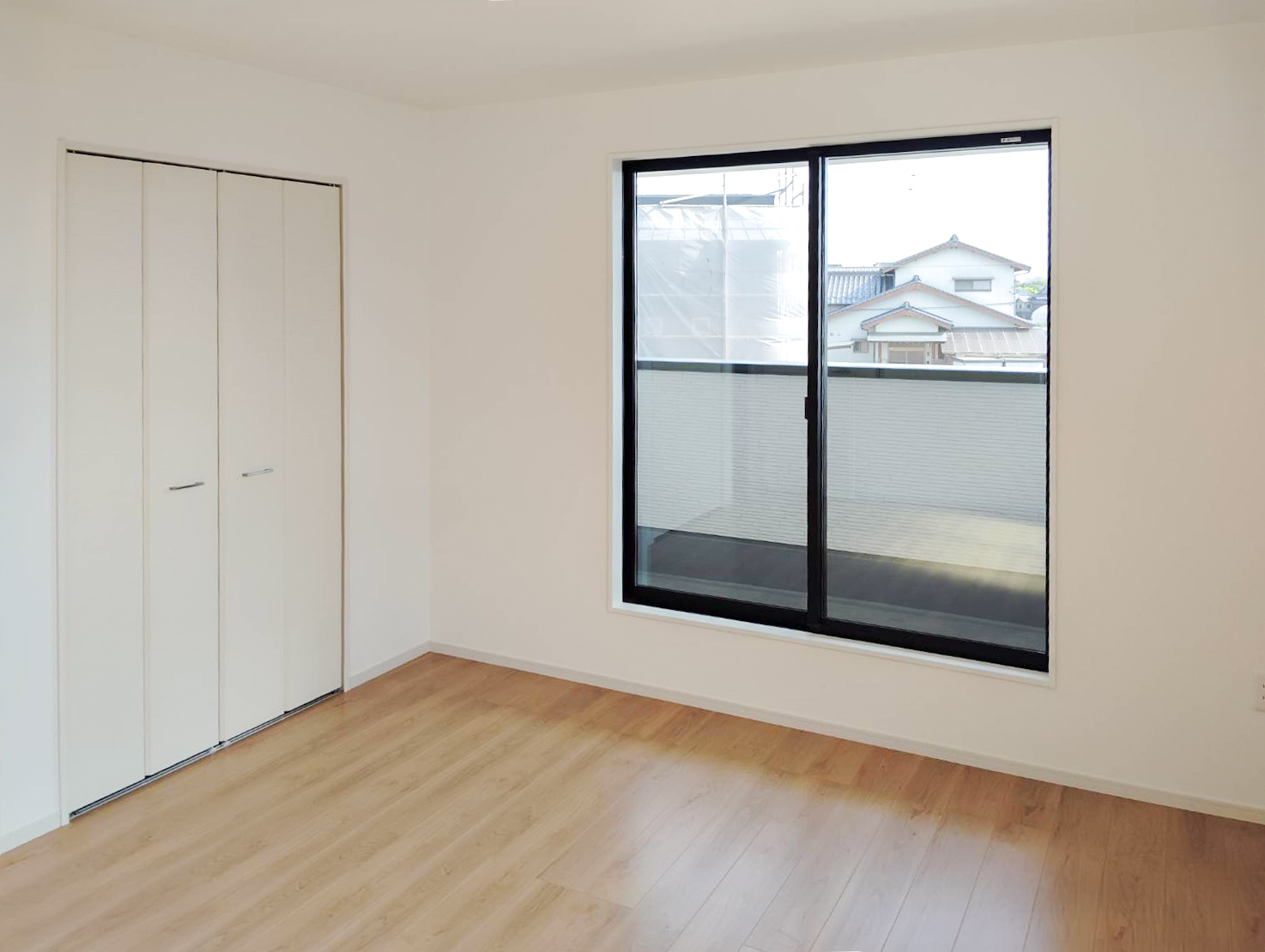 バルコニー付きの寝室。寝具の天日干しもラクラク♪屋根付きなので、雨の日も慌てず取り込めます。