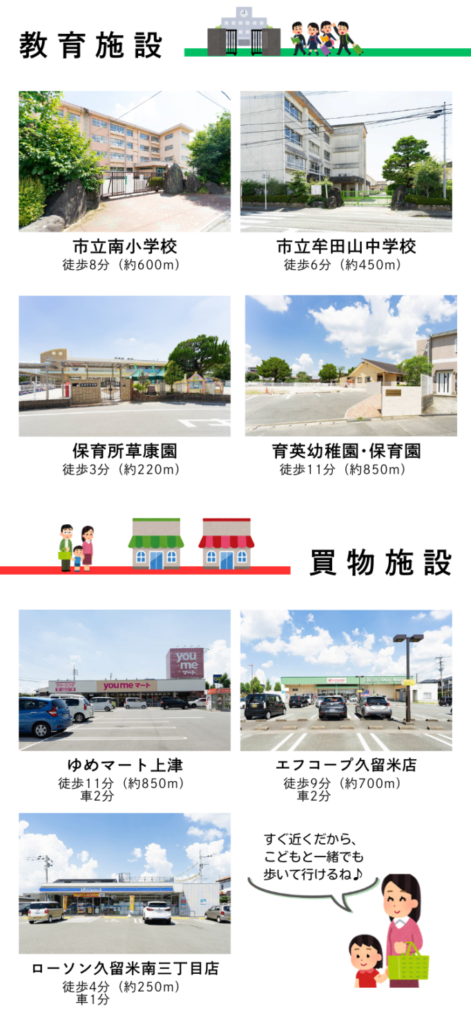 🏫 南小学校・牟田山中学校が徒歩圏内。安心して送り出せる距離だから、毎日の通学も安心!
