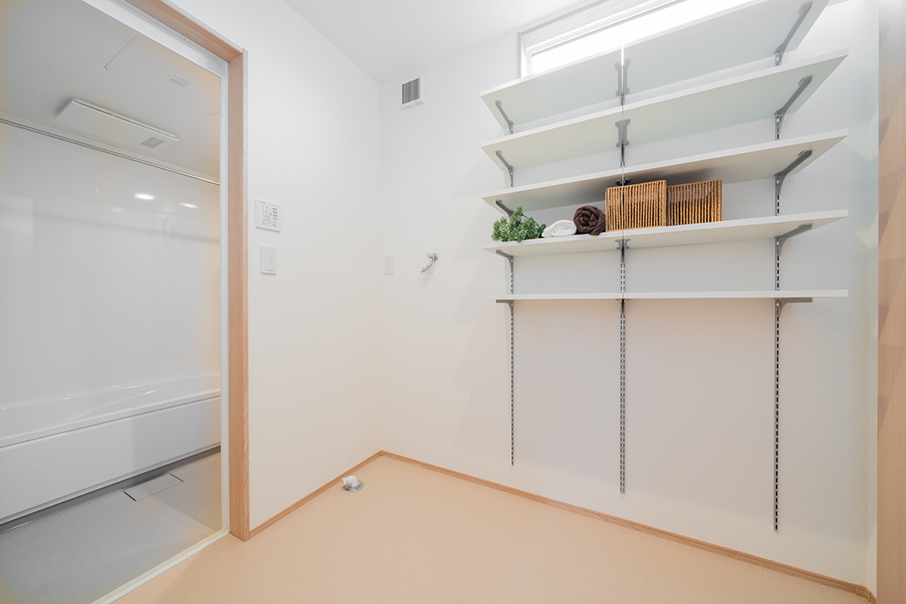 🍳 家事ラク動線:キッチン→洗面→浴室までスムーズ