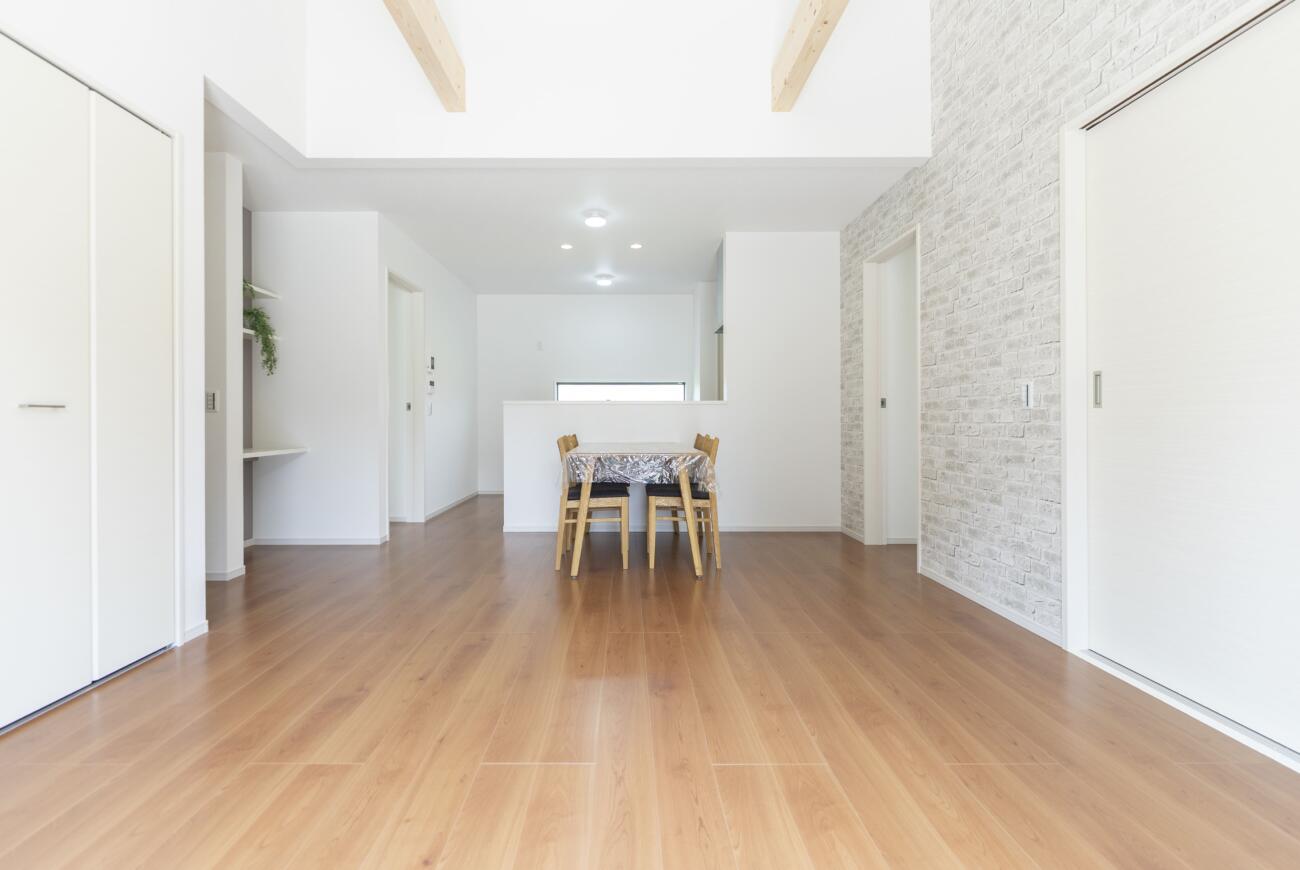 勾配天井×見せ梁(はり)がおしゃれ。
