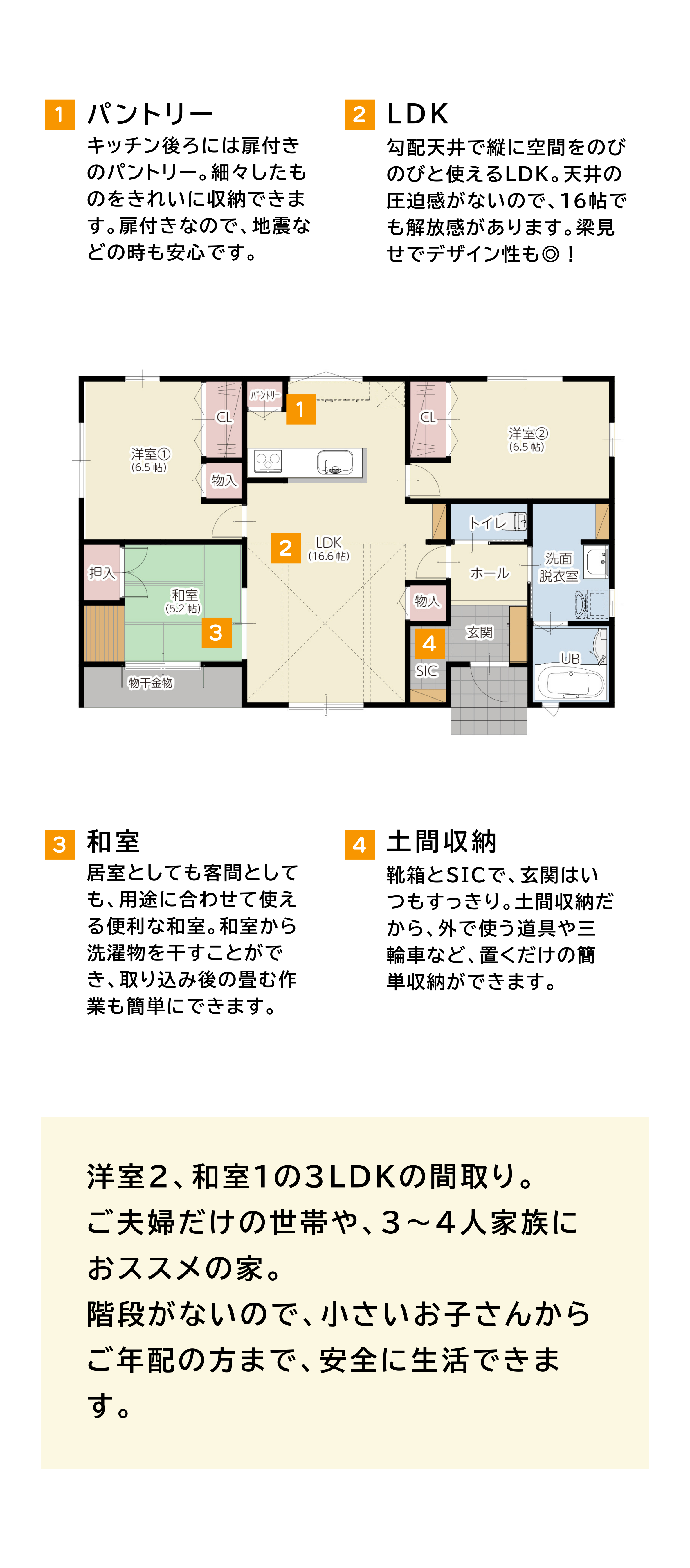 必要な場所に必要な収納があり、探し物も減って家事も時短。コンパクトなのに機能的で、忙しいママの毎日を支えます。