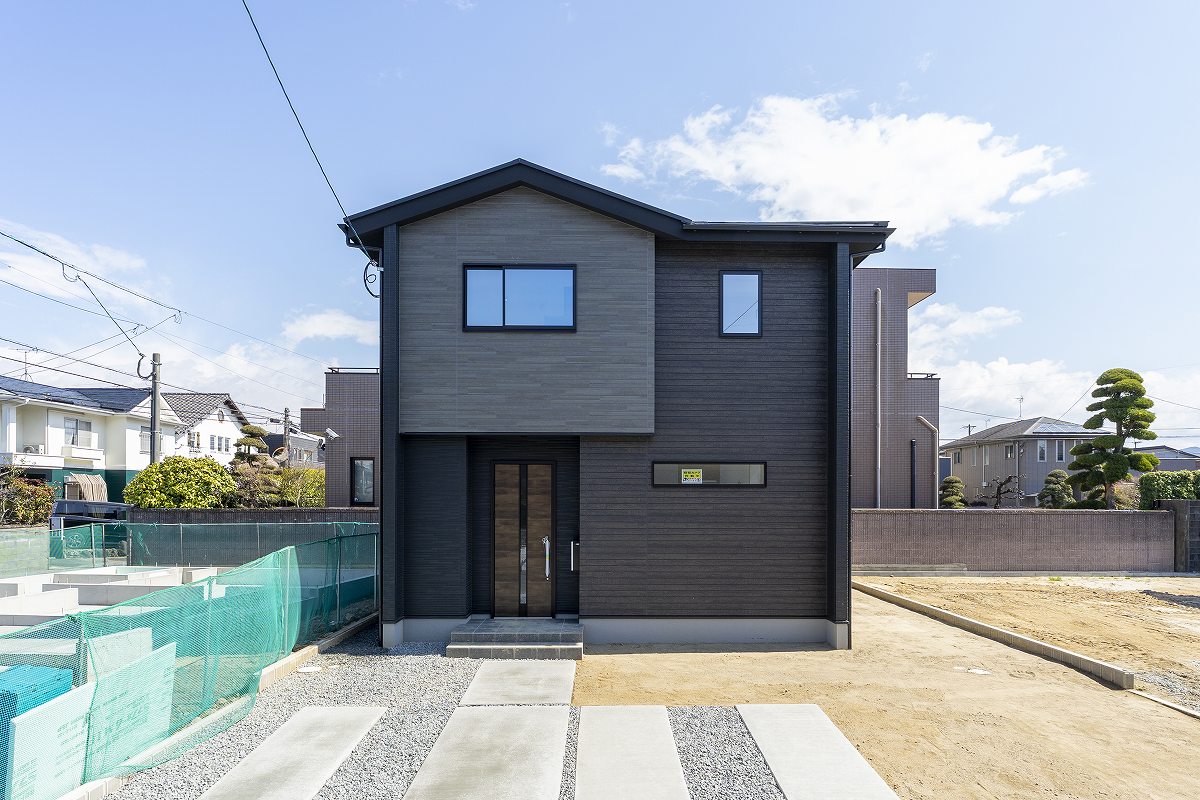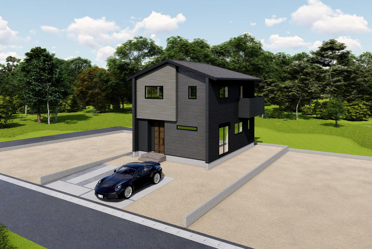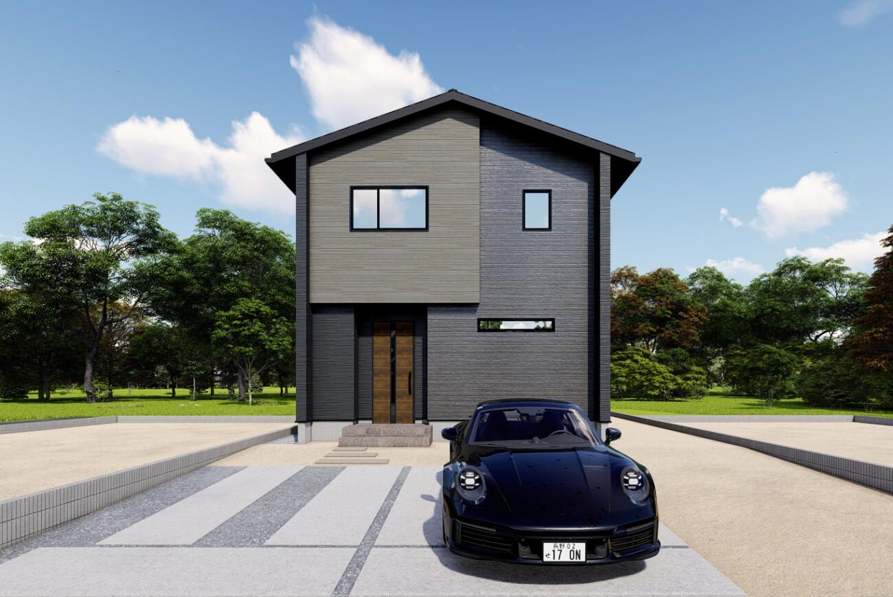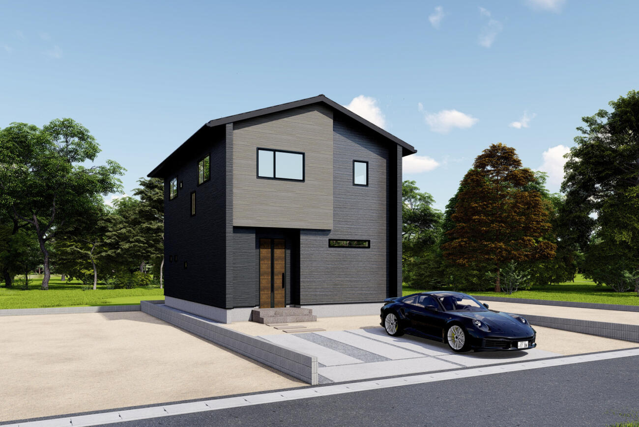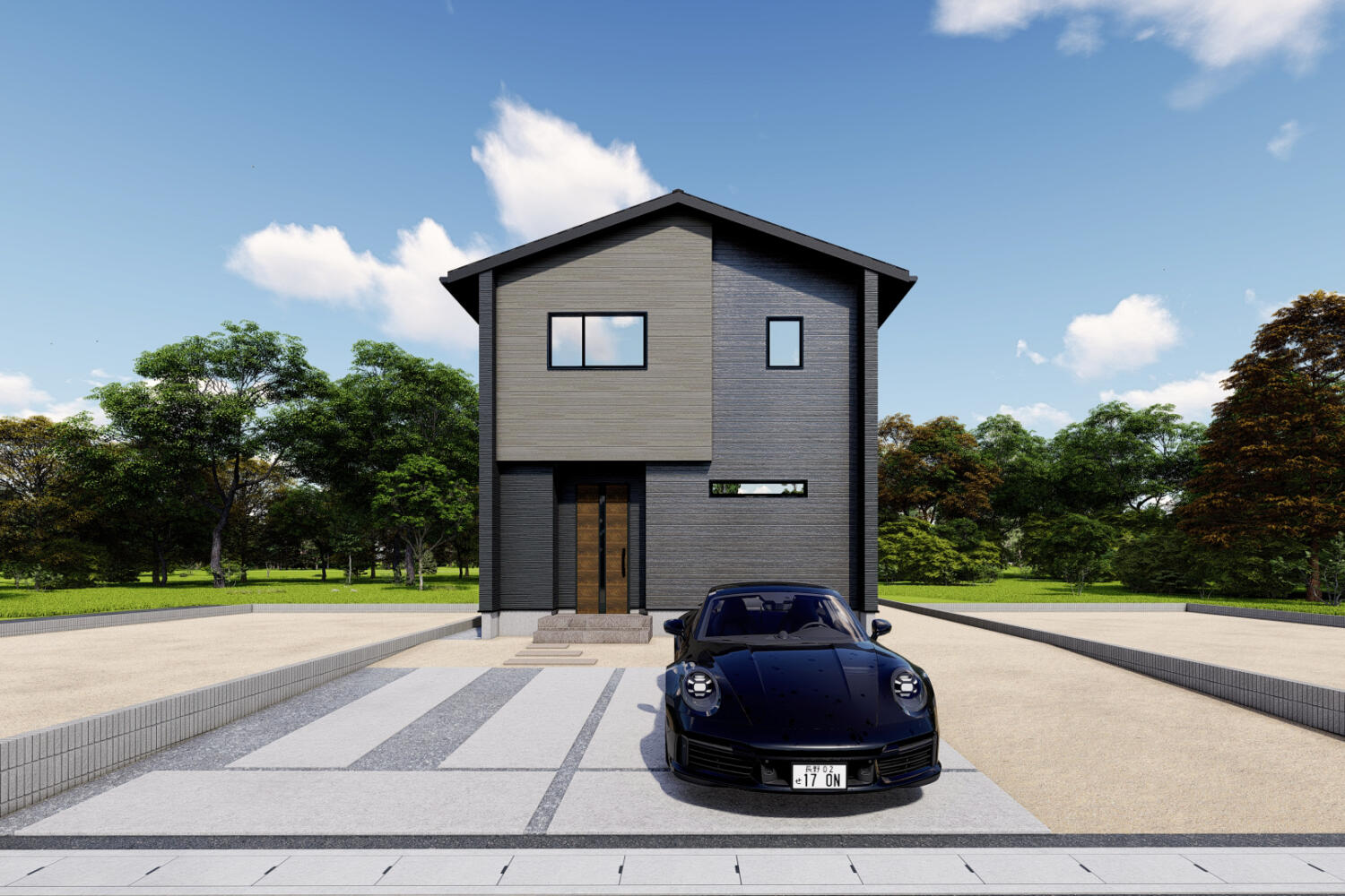 ✅ 自慢したくなるモダン外観 🚗 ブラック×グレーのスタイリッシュなデザイン。駐車場も広々です!
