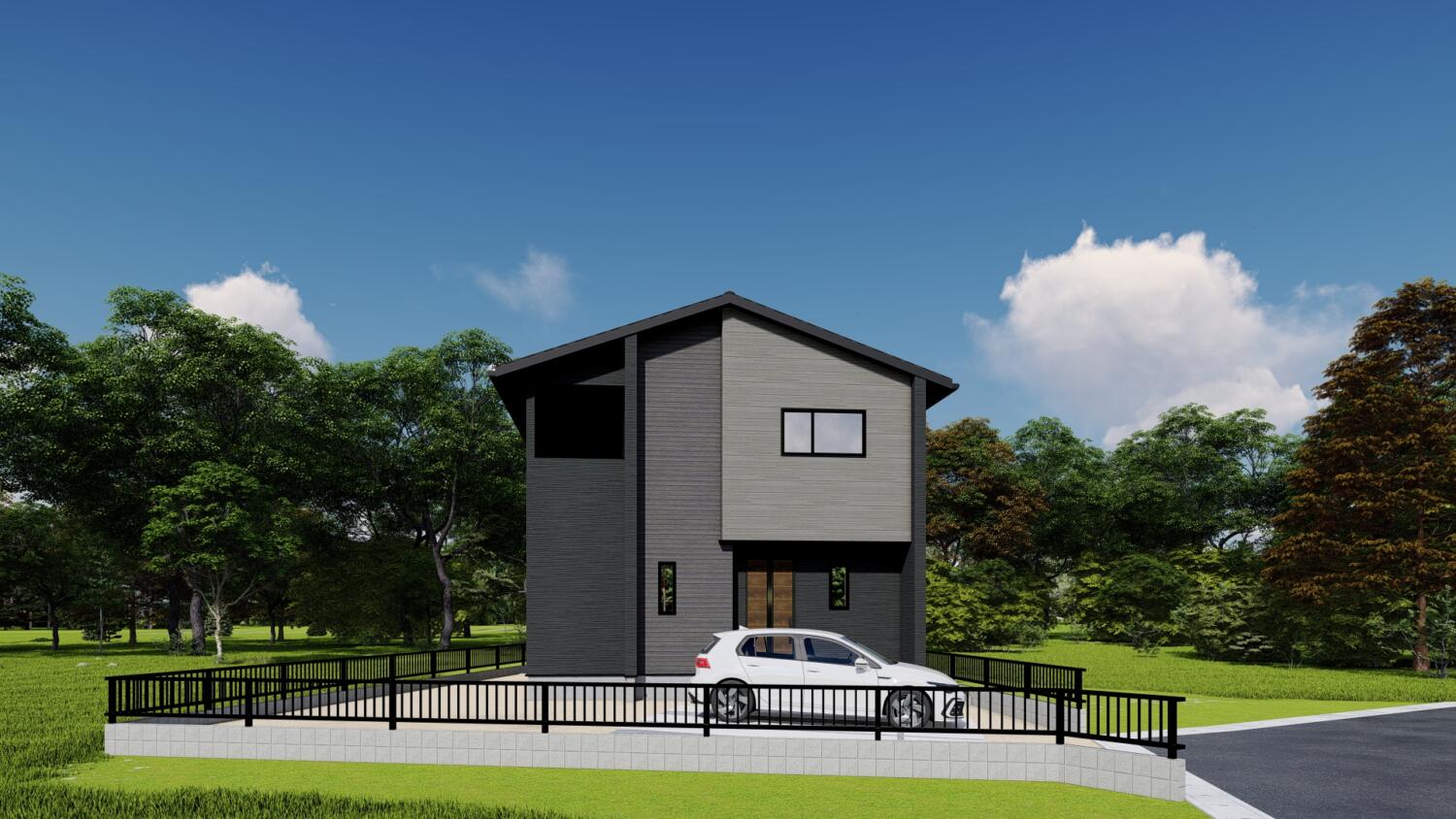 ✅ 木目×ブラックの洗練デザイン: シックで高級感のある外観。駐車場からの動線もスムーズです。
