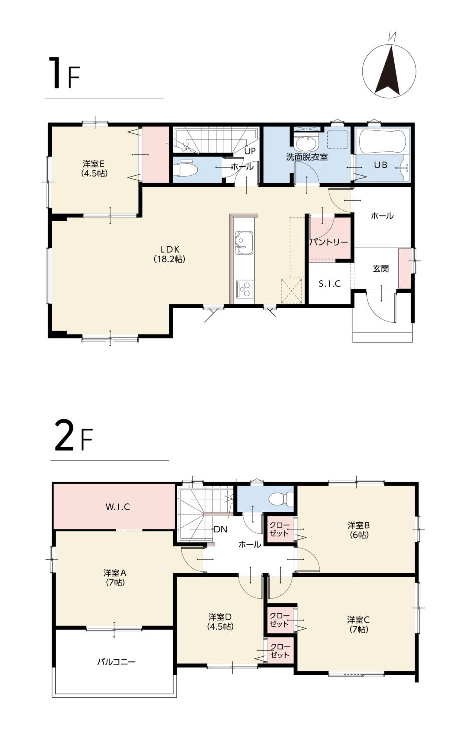 圧倒的な部屋数「5LDK」 2階に4部屋+1階に1部屋の計5室を確保。テレワーク、子供部屋、ゲストルーム、趣味部屋など、ライフスタイルの変化に合わせて柔軟に使い分けられます。