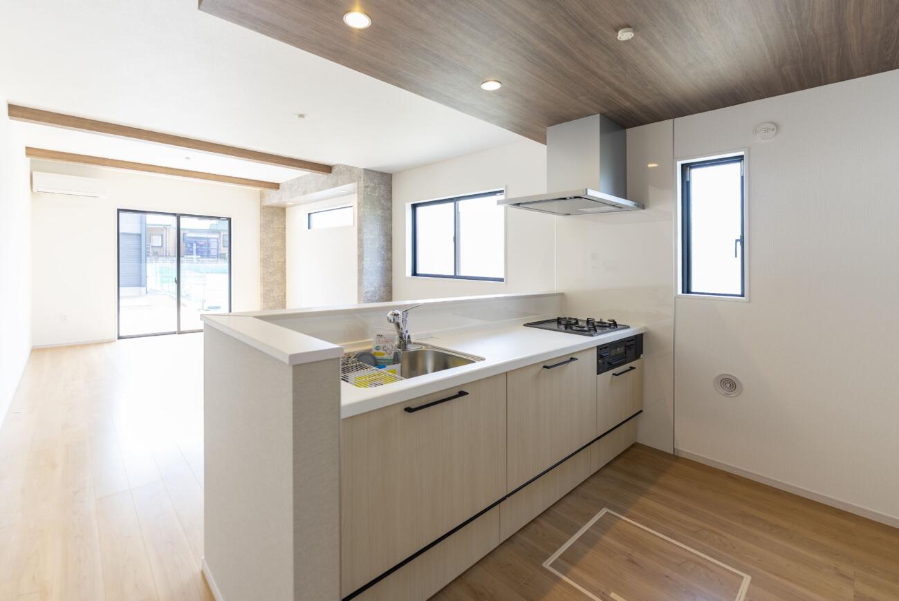 家事の時短を叶える「最短ルート」 キッチンと洗面室が隣接し、料理と洗濯を同時にこなせる「家事ラク動線」。忙しい夕方の時間を効率化します。