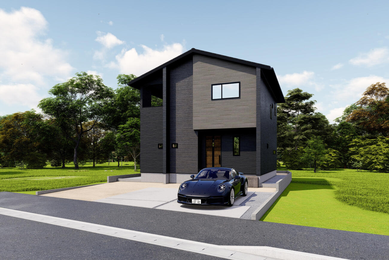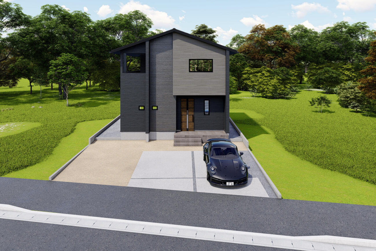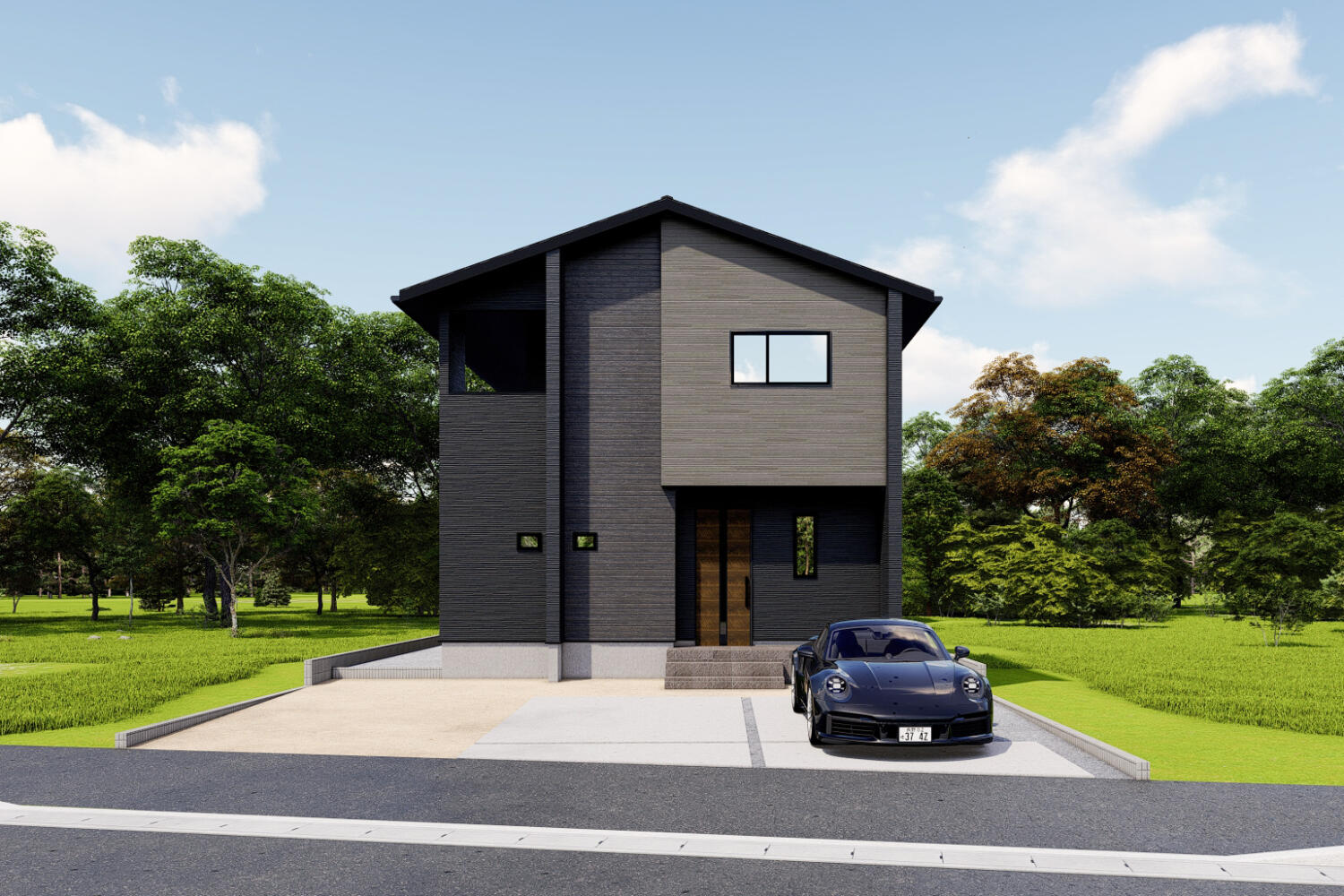 ✅ 2台以上駐車OK! 🚗 黒×木目調のモダンな外観。 敷地が広く、車3台が余裕で停められるので、来客時も安心です。