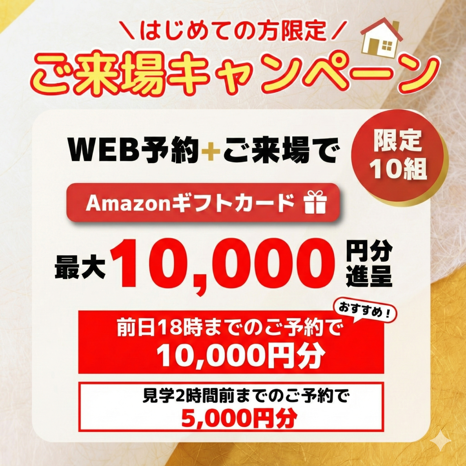 〈新規ご来場者限定〉Amazonギフトカード最大1万円分プレゼントキャンペーン✨