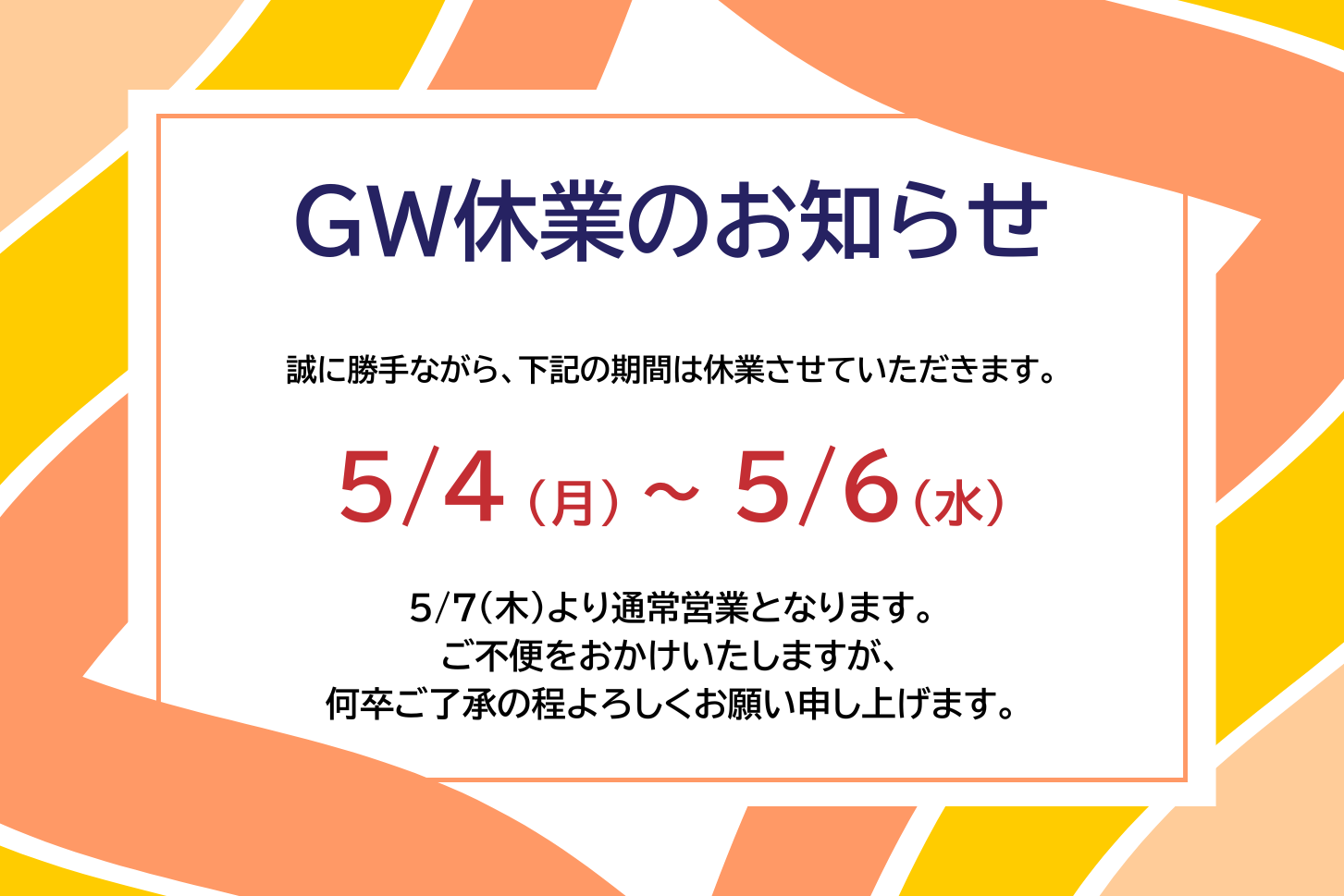 休業中のお問い合わせにつきましては、5月7日(木)以降順次ご対応させていただきます。