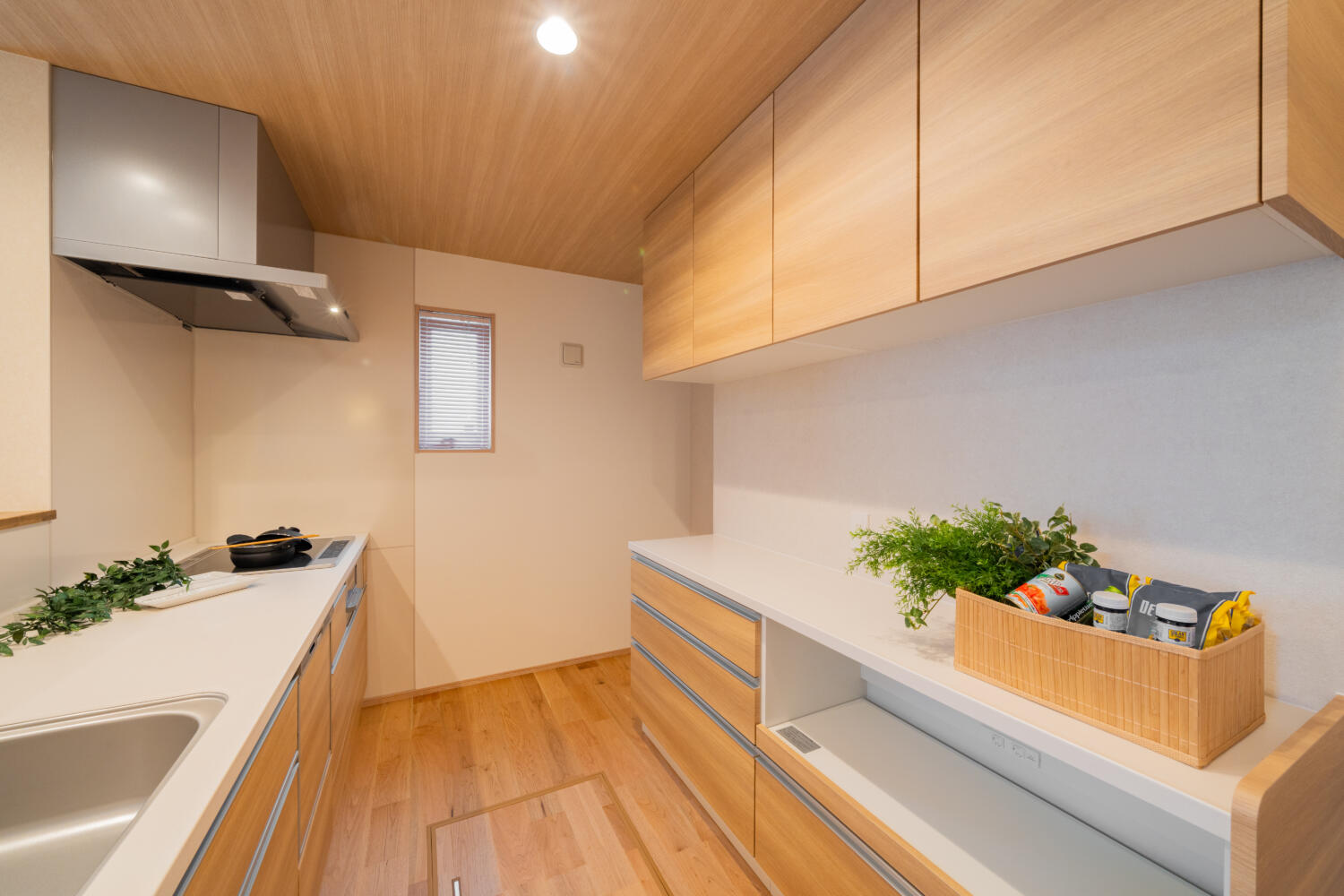 ナチュラルな木調のキッチン。年代問わず愛されるやさしいデザイン。