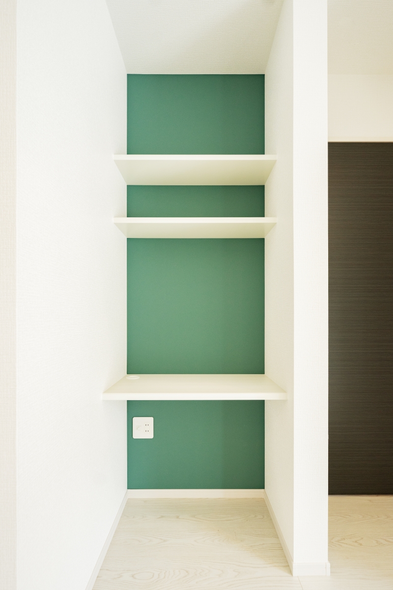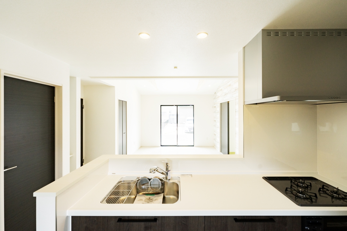 リビングの一角にはスタディカウンター。勉強・PC作業・家事スペースなど、用途は多彩。