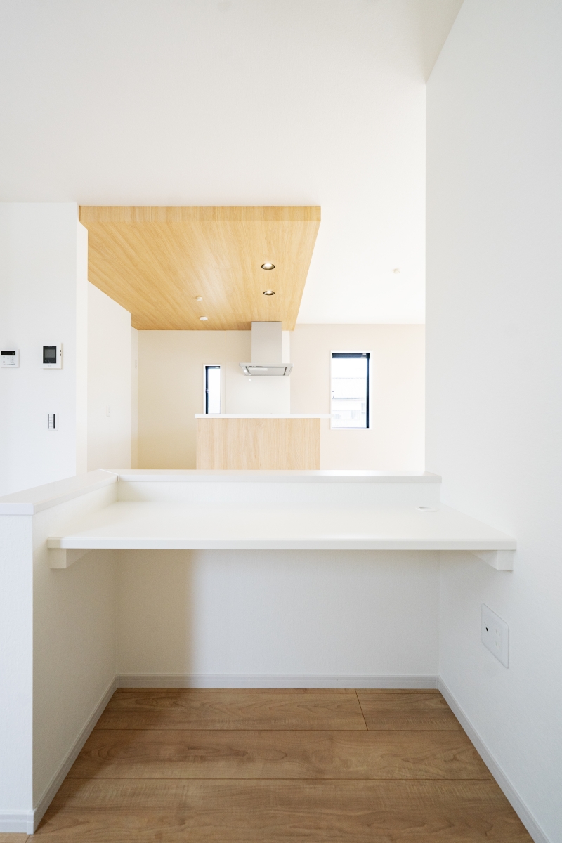 キッチン横にはカウンター。子どもの勉強机がわりにしたり、家事の作業スペースにしたりと用途多彩。