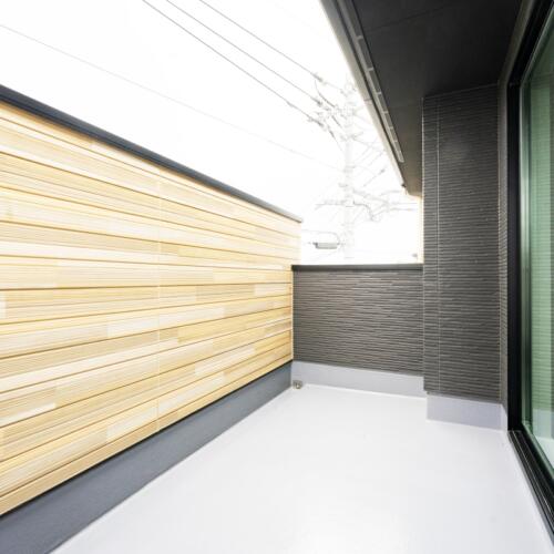 木目と黒のコントラストが魅せる、視線を集めるモダンな立面デザイン。